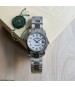 A caixa sólida de aço inoxidável 904L confere durabilidade e resistência ao relógio, tornando-o perfeito para uso diário. O vidro de safira à prova de arranhões protege o mostrador branco com marcadores brilhantes, oferecendo uma clareza excepcional e uma aparência impecável.
